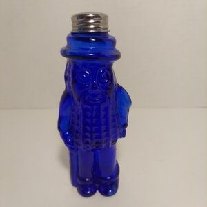PLANTERS MR. PEANUT Cobalt Blue Glass Salt / Pepper Shaker Advertising Colorful