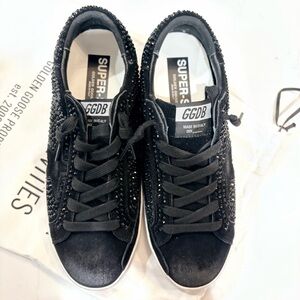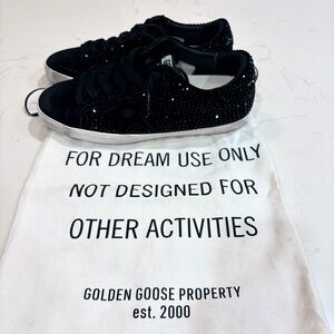 Golden Goose black suede Superstar with Swarovski crystal embellishments and black suede star. Gently worn, with bag. IT W/41. US W/9.5-10.