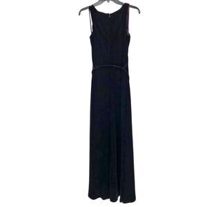 Ralph Lauren Womens Velvet Maxi Dress 2 Dark Purple Belted V Neck Sleeveless NWT