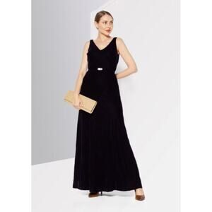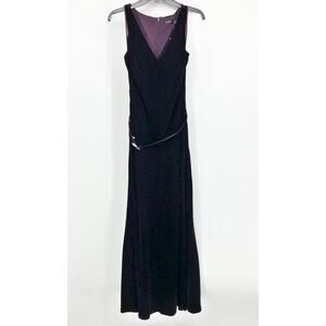 Lauren Ralph Lauren Velvet Maxi Dress 2 Dark Purple Belted V Neck Sleeveless NWT