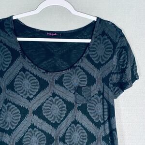 Fresh Produce Top Womens XL Gray Cotton Argyle Blouse Cottage Boho Lagenlook