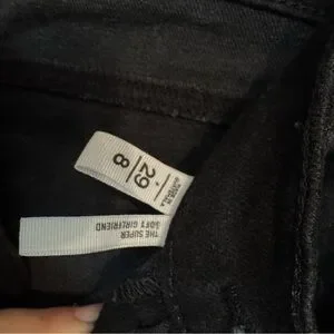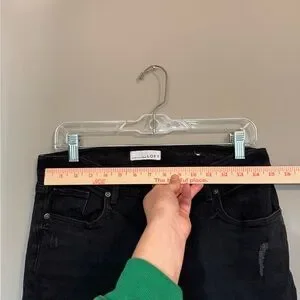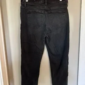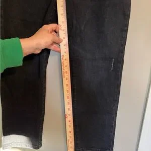 Chic dark black jeans with a cropped style. Perfect for casual or dressy looks. Comfortable and stylish.