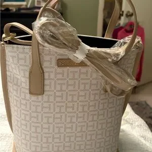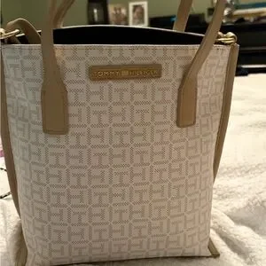 Tommy Hilfiger Beige and Tan Geometric Tote
