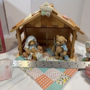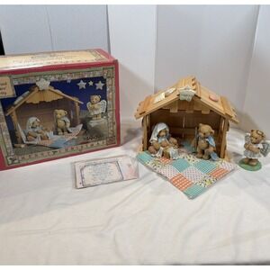 Vintage Enesco Cherished Teddies Nativity 4 Piece Set Stable Figurines Box