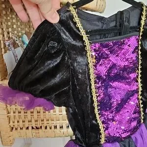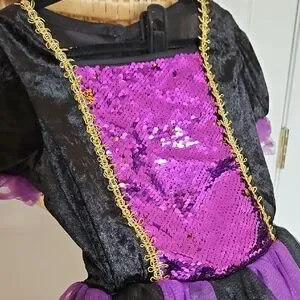 unsure of brand. Sparkly Disney costume with purple sequins and black accents. Ideal for Halloween fun.