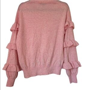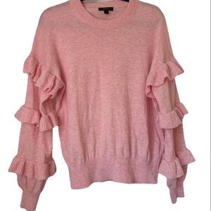 J. Crew Wool Bubblegum Pink Ruffle Sleeve Sweater Crew Neck Size Medium