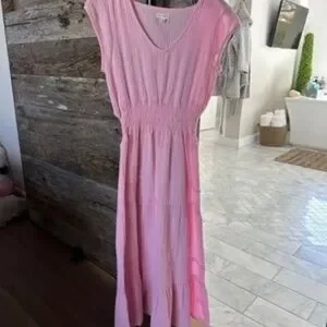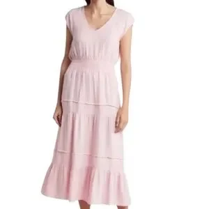 Maisie Gauze Smocked Midi Dress Pink XS NWT Cottagecore Feminine
