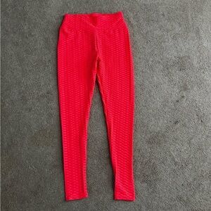 Bright pink leggings with a unique textured design. Perfect for a bold and stylish look.