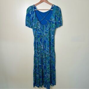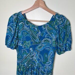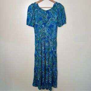 Boden Paisley Blue Green Jersey Maxi Dress Cut Out Back Tiered Pockets Size 6