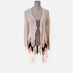 American rag Knit knee length cardigan open chevron zig zag medium in Cream
