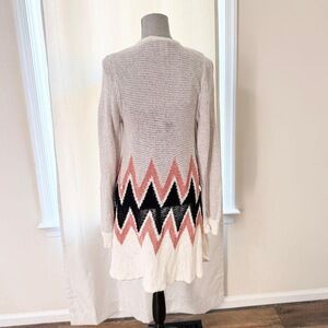 Color: peach pinkish black cream white open cardigan with chevron pattern