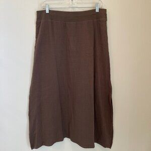 J.Jill Pure Jill Gauzy Cotton Waist Midi Skirt Bark NWT Women Med Brown Elastic