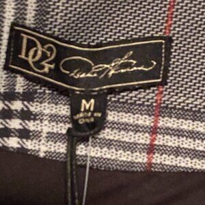 DG2 Diane Gilman Black White Burgundy Plaid Stretch Blazer, NWT, Size M. This is a beautiful blazer in a black, white & burgundy plaid. The blazer is lined, has two front pockets & an extra button. This blazer is new in new condition. Well made and heavy duty.