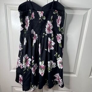 Keywords: floral dress, bustier dress, sundress, black dress, pink floral, summer dress, vacation dress, casual dress, End of Gypsies, floral print, bohemian style, boho dress, lined dress, smocked back