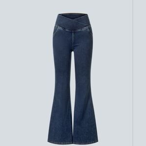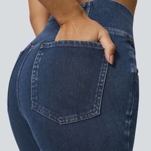 NWT!! Flared Denim High Crossover Waist Pockets Stretch Halara