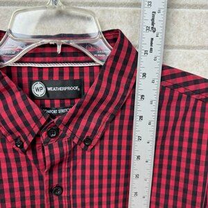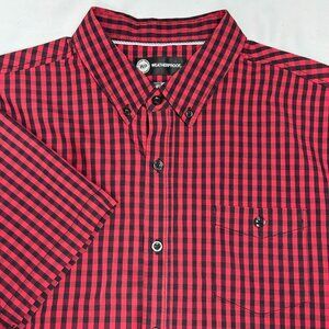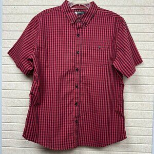 Red Black Gingham Short Sleeve Button Down Stretch Shirt Men’s XL