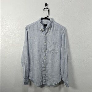 J. Crew Linen Button Down Shirt Mens Sz M Long Sleeve Striped Slim Fit Preppy