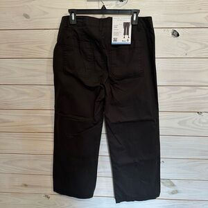 Stylish dark grey crop pants. Features a sleek design with a comfortable fit.