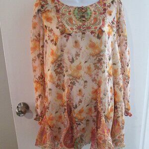 Umgee Orange Floral Paisley Boho Mini Dress Tunic Sz L NWT