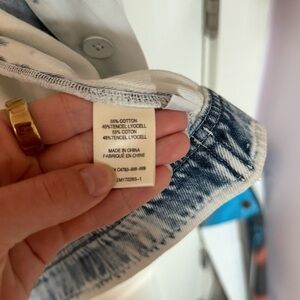 The Cloth & Stone Acid Wash Cotton/Lyocell "Denim" Jacket in size medium is a stylish and versatile piece perfect for any 80s boho western-inspired look. Made from a blend of cotton and lyocell, this jacket features a unique acid wash denim fabric that adds a trendy touch. Ideal for men who appreciate classic denim style with a modern twist, this jacket is a must-have for any wardrobe.