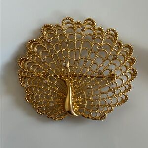 Vintage Gold Tone Metal Peacock Brooch