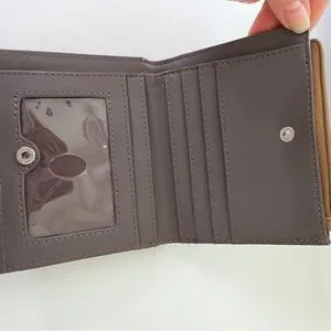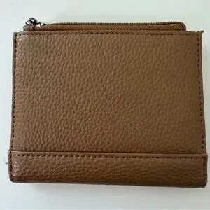 This bag and wallet are pre-owned. There is some wear on the metal hardware on both of them.