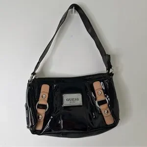GUESS Glossy Black Shoulder Bag & Floral G-Logo Wallet Bundle