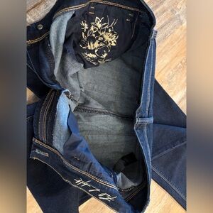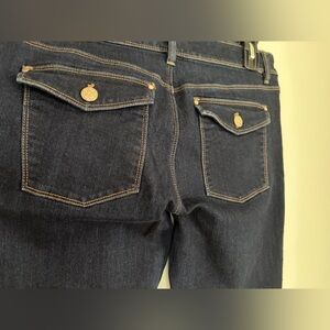 White House Black Market sleek, dark blue skinny flare jeans. These are gorgeous in excellent condition! Features five pocket styling with button accents on front and back pockets. Nice stretch for form fitting, tailored look.