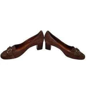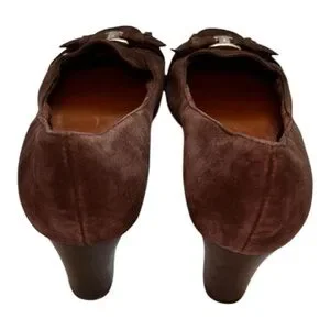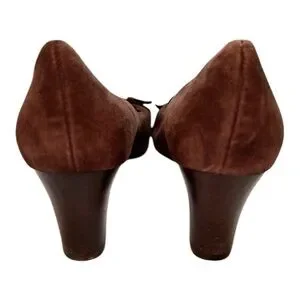 Vintage Etienne Aigner brown suede block heel pumps loafers