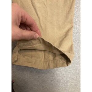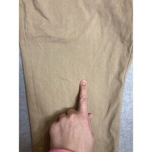 The product is a pair of Mnml men's jogger pants in khaki color, size M. The pants feature a pull-on closure and a casual, preppy style. They are designed for regular size women and are ideal for everyday wear. Made by the brand MNML, these jogger pants offer a comfortable and stylish option for women looking for a basic wardrobe staple. NOTE: two very tiny spots on front as pointed out on photos. Very little if any wear.