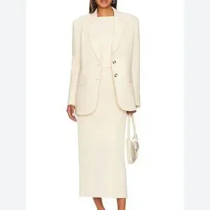 Chic cream blazer with matching skirt. Perfect for formal events. Sophisticated and stylish design. Oversized blazer