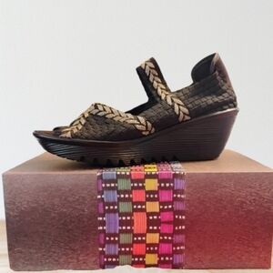 New in The Box, Bernie Mev Black and Bronze color Woven Wedge Elevate your style with these chic woven wedge sandals. Featuring a sophisticated black and bronze Braid design, these shoes offer both comfort and elegance. Perfect for any occasion... Sizes Available.40= (9) --38 =(7)
