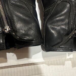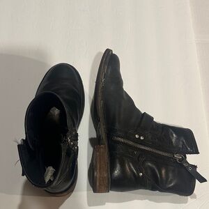 Good condition Stylish and durable black leather boots. Perfect for any occasion. They have wear and tear marks as shown but still a lot of life left in them. Therefore lower priced
