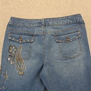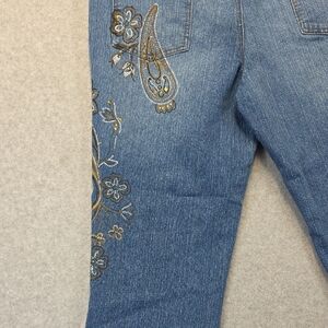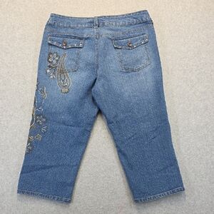 Faded Glory Ladies 16 Stretch Denim Capri Cropped Jeans Floral Embellished
