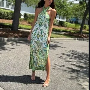 FARM Rio Tropical Tapestry Halter Linen Maxi Dress