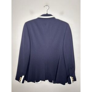 Talbots Italian Knit Long Sleeve Navy White Buttons Blazer Size 12P