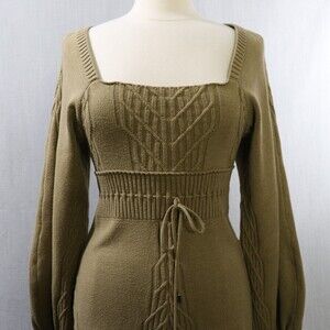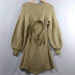 Free People Emmaline Sweater Dress Womens M Green Cutout Back Balloon Sleeve