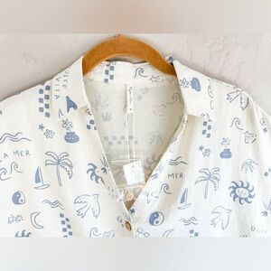 Rylee + Cru Jenni Women’s Button Top - Mediterranean Cream Blue NWT- Size Medium