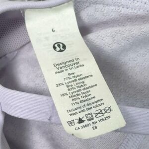 Pre-owned with light overall wear from regular use. Fabric, straps, and mesh lining are clean and intact with no stains, holes, or pilling. Elastic underband and reflective Lululemon logo are secure, and interior size and care tag are present.