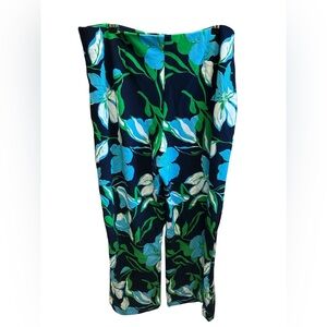 Boston Proper Tropical Blue Chic Floral Wide-Leg Pants Resort Vacation Summer.