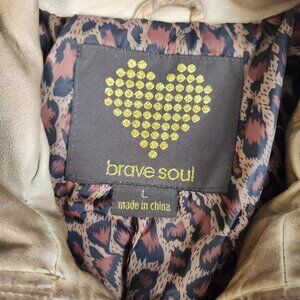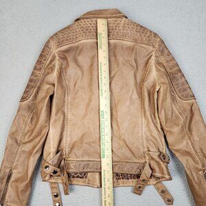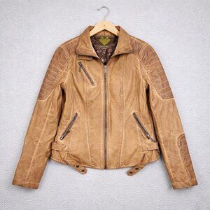 Y2K Womens Brown Faux Leather Coated Full Zip Biker Moto Jacket Size Large Lined