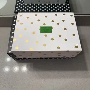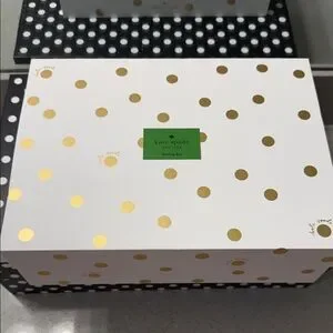 Kate Spade White and Gold Polka Dot Box Magnetic Closure