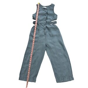 Zara Kids Girls Blue Grey 100% Linen Cut Out Sleeveless Jumpsuit Size 10 140