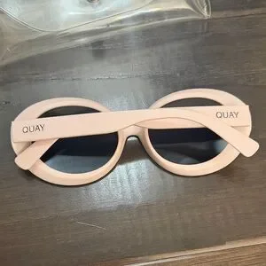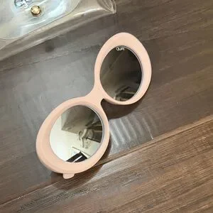 Stylish pink round sunglasses by Quay. Comes with a clear case. No scratches Silver mirror