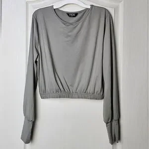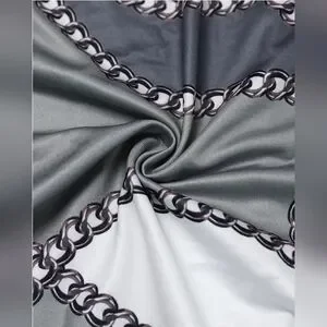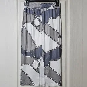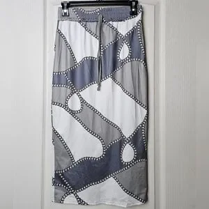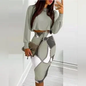 CHICME Womens 2pc Long Sleeve Top, Chain Print Color Block Skirt Sage Gray White