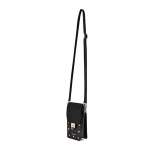 Sleek and stylish black crossbody bag with studded details. Perfect for any occasion.