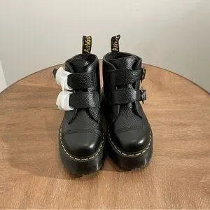 New Dr. Martens Women's Devon Flower Buckle Leather Platform Boots