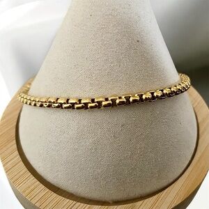 Box Chain Gold Plated Stainless Steel 9 inch long and 4mm width bracelet - Gold