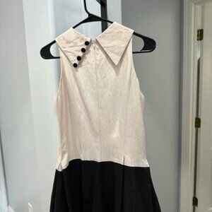 Carol Peretz Sleeveless Mock Neck A Line Black Pink Dress Size 6 Vintage Vtg •