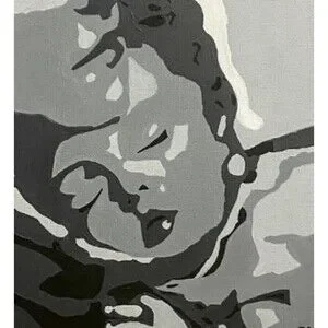This is an original acrylic painting titled "The Madonna of Military Moms" by artist Mark A Cappabianco (mac). The painting measures 24 x 24 inches and is unframed. It features a portrait of a military-themed subject in a Pop Art style, handmade with acrylic paint. This one-of-a-kind piece is signed by the artist and was produced in 2023 in the United States, showcasing a contemporary and unique artistic creation.